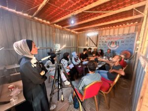 Na manhã desta quinta (25/09), um grupo de jornalistas palestinos, direto de Gaza, conversou com a direção da Federação Nacional dos Jornalistas (FENAJ), e com cerca de 50 profissionais de mídia brasileiros convidados pela entidade, sobre a situação da imprensa e do povo palestino diante dos quase dois anos de ataques de Israel. Meia hora após a reunião, a tenda de onde falaram alguns dos colegas foi bombardeada pelas forças israelenses. A informação foi repassada pelo presidente do Sindicato dos Jornalistas Palestinos (PJS), Naser Abu Baker, ao embaixador da Palestina no Brasil, Ibrahim Alzeben.